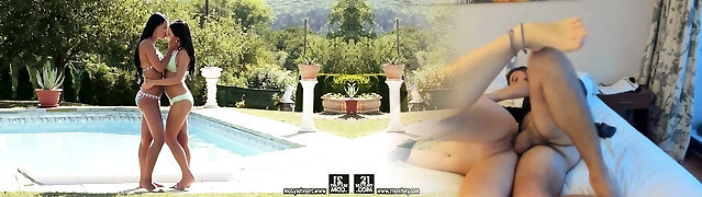 Tanning by the pool makes them more aroused than usual, and the dark haired muff divers embark finger-tickling themselves