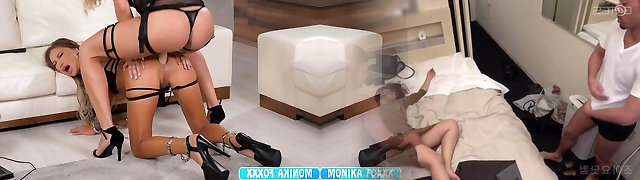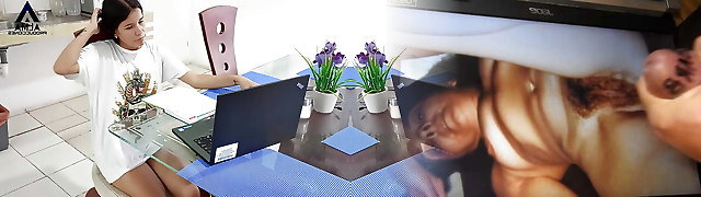 my stepsister is video calling with her beau so I join in and we plow so her boyfriend can watch us.