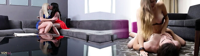 Fake Hostel - Two young college babes lick each other before seeing thick bone and having squirting orgasms three way