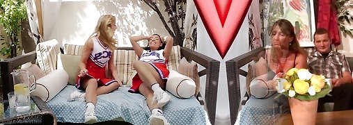 Hot Cheerleader Coco Lovelock Keeps Spurting To Show Her Domination To Eliza Ibarra As Team Captain